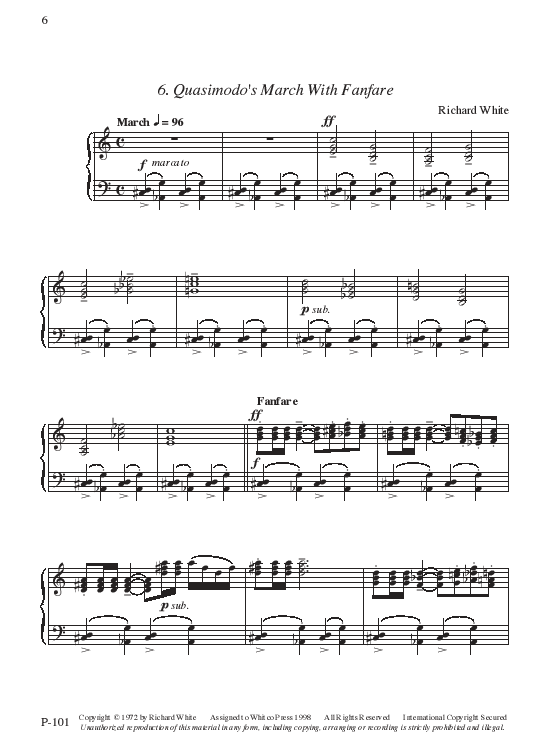 In December of 1971 I wanted to write a short piano piece as a Christmas gift for a piano student. Normally I write such pieces rather quickly, but this time I was unable to meet my deadline. Liking what I had produced of Reflections in a Lake thus far, I finished it and added five more short (some very short!) pieces. Four months later, in April of 1972, Six Pieces for the Younger Pianist was finished. Although short, these pieces do require several good years of pianistic training to navigate successfully. Coincidentally, my son was born in February of 1972; overall, a rather productive year I'd say! |